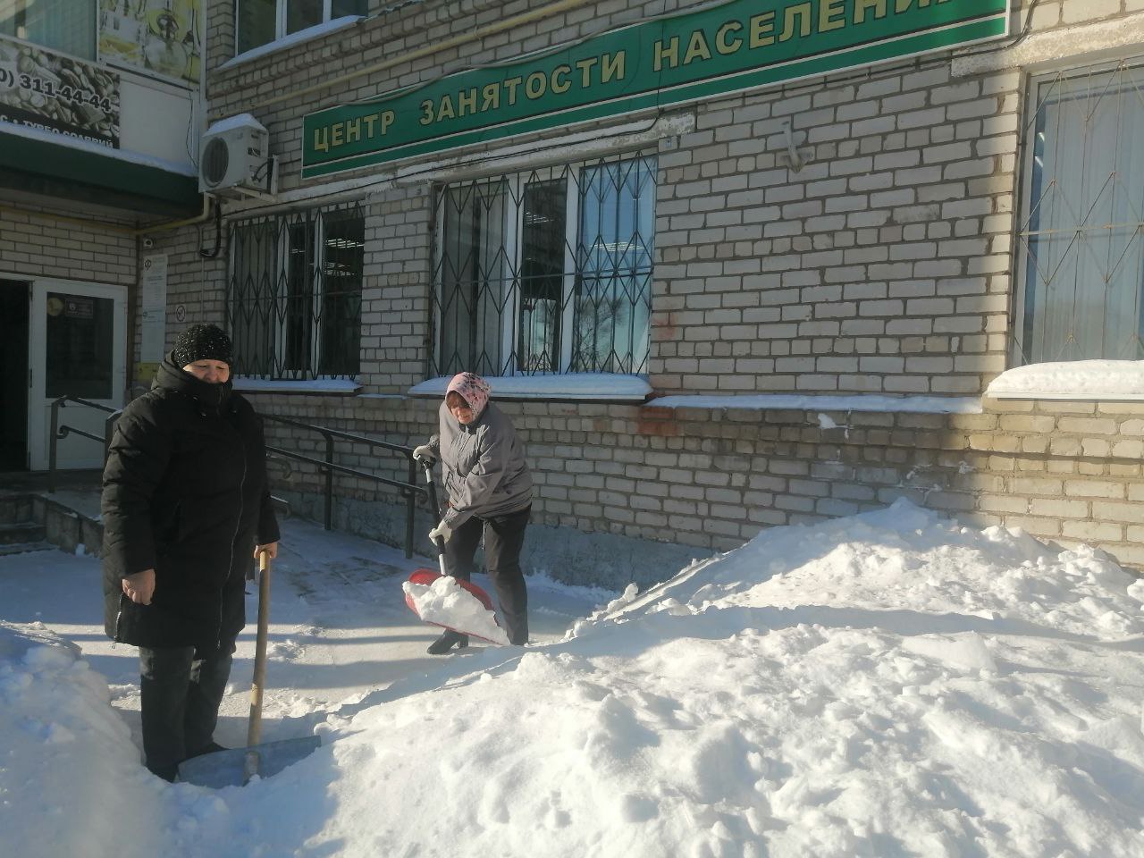 В рамках мероприятия сотрудники Кадрового центра Руднянского округа приводили в порядок территорию, прилегающую к учреждению - очистили подходы к учреждению и площадку перед зданием от сброшенного с крыши снега.