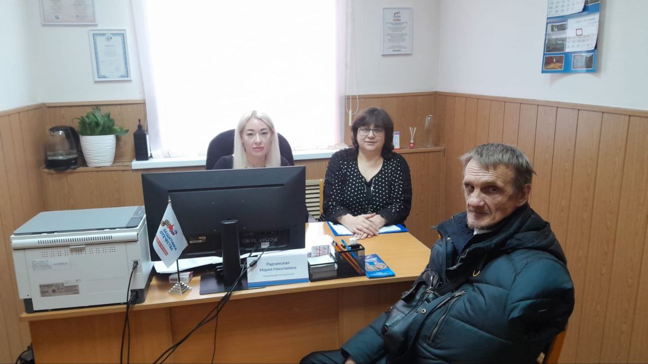 В соответствии с планом встреч в рамках межведомственного взаимодействия и работы с участниками специальной военной операции 12 ноября директор СОГКУ «Центр занятости населения Руднянского района» Светлана Гращенкова и социальный координатор Фонда защитники Отечества Мария Радчинская провели консультационно-информационное мероприятие с приглашенным ветераном боевых действий, участвовавшим в специальной военной операции.