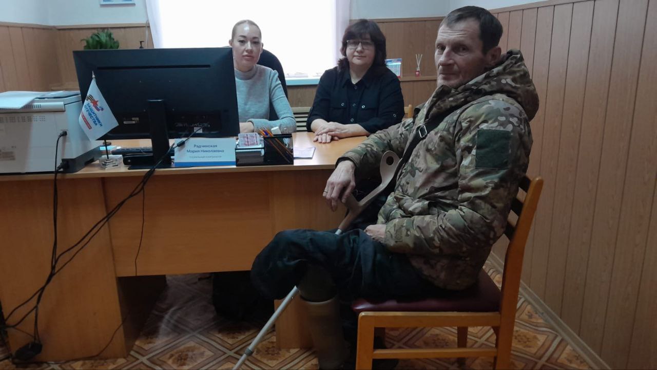 В соответствии с планом встреч в рамках межведомственного взаимодействия и работы с участниками специальной военной операции 19 ноября директор СОГКУ «Центр занятости населения Руднянского района» Светлана Гращенкова и социальный координатор Фонда защитники Отечества Мария Радчинская провели консультационно-информационное мероприятие с приглашенным ветераном боевых действий, участвовавшим в специальной военной операции.