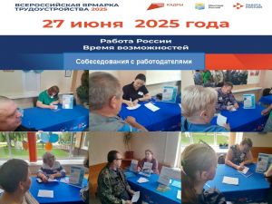 27 июня по всей стране прошел федеральный этап Всероссийской ярмарки трудоустройства «Работа России. Время возможностей» 2025 и Фестиваль профессий.