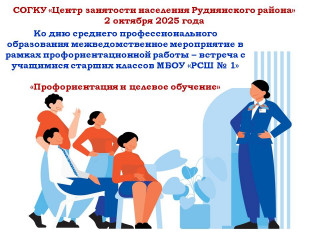В рамках межведомственных мероприятий по профессиональной ориентации учащихся школ города и района в день среднего профобразования проведена встреча представителями СОГКУ «Центр занятости населения Руднянского района» и ОГБУЗ «Руднянская ЦРБ» с учащимися МБОУ «РСШ № 1». Участниками встречи стали 36 учащихся старших классов.