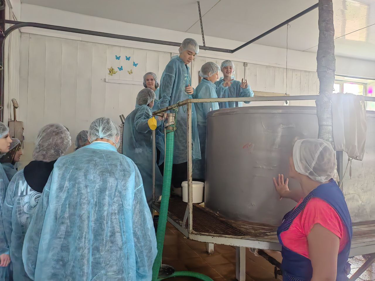 Ребята прошли по цехам предприятия. Надо отметить, что работа в цехе переработки нелегкая: много ручного труда. Традиционные технологии не предусматривают никаких машинных процессов.