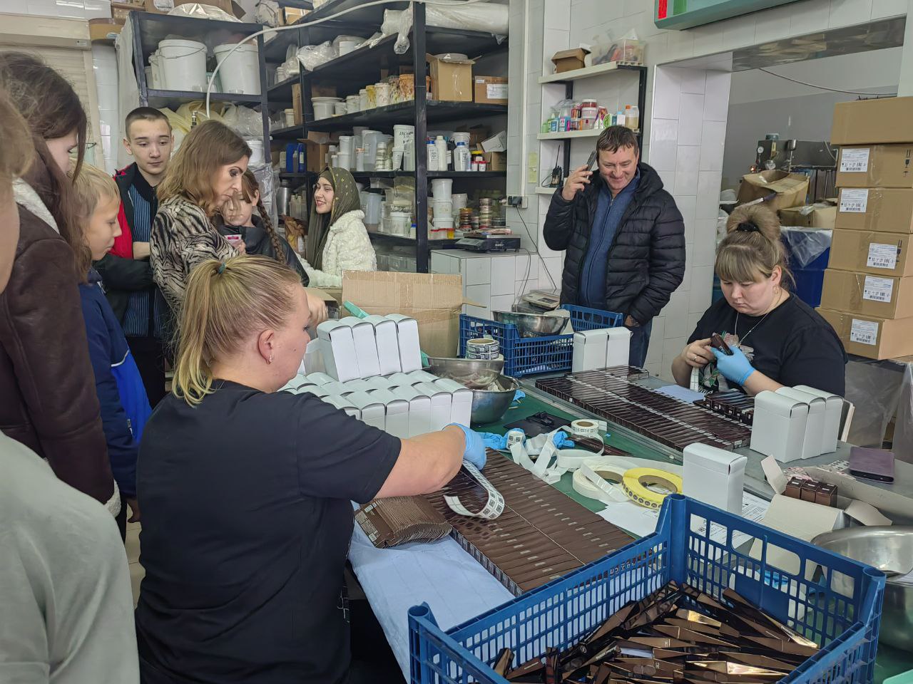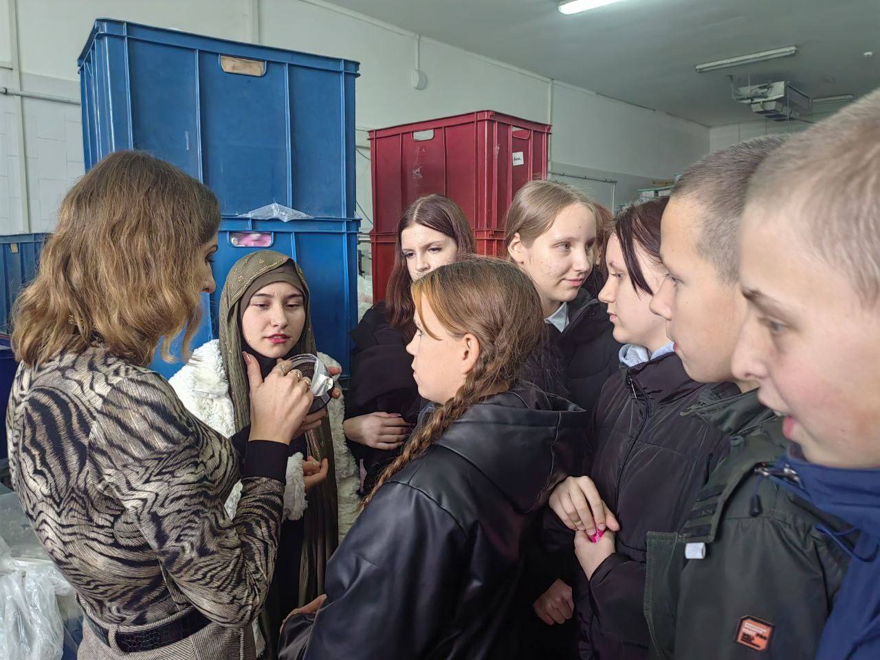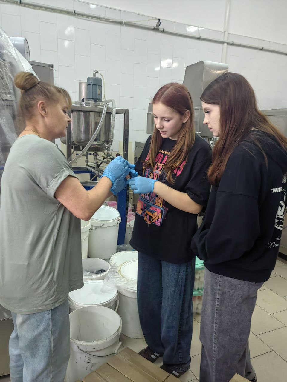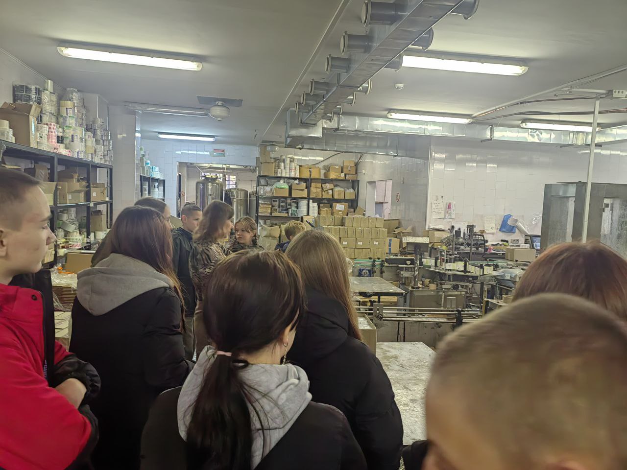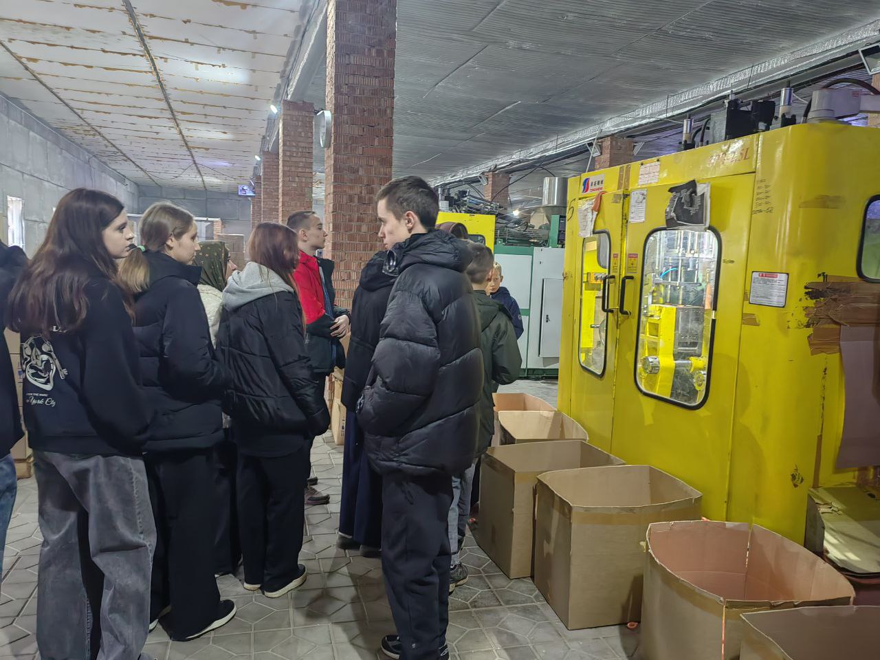 Ребята прошли по цехам предприятия. Узнали много нового о процессах производства. Учащиеся с интересом наблюдали, как работают станки, машины и оборудование. Познакомились с ассортиментом выпускаемой продукции.