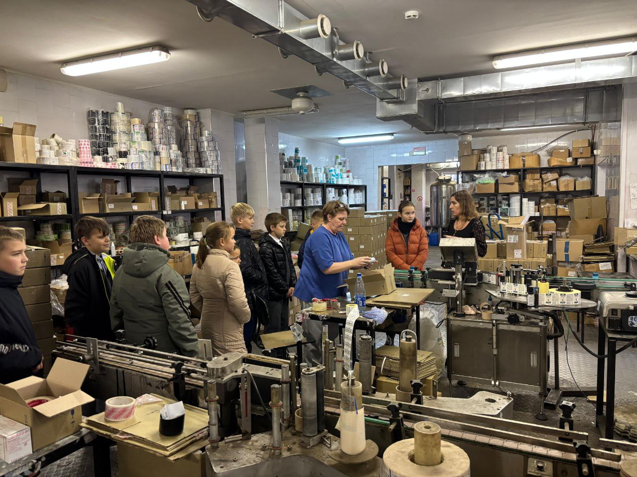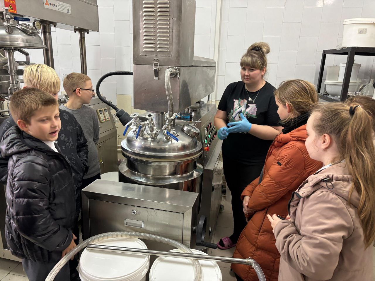 Ребята прошли по цехам предприятия. Узнали много нового о процессах производства. Учащиеся с интересом наблюдали, как работают станки, машины и оборудование. Познакомились с ассортиментом выпускаемой продукции.