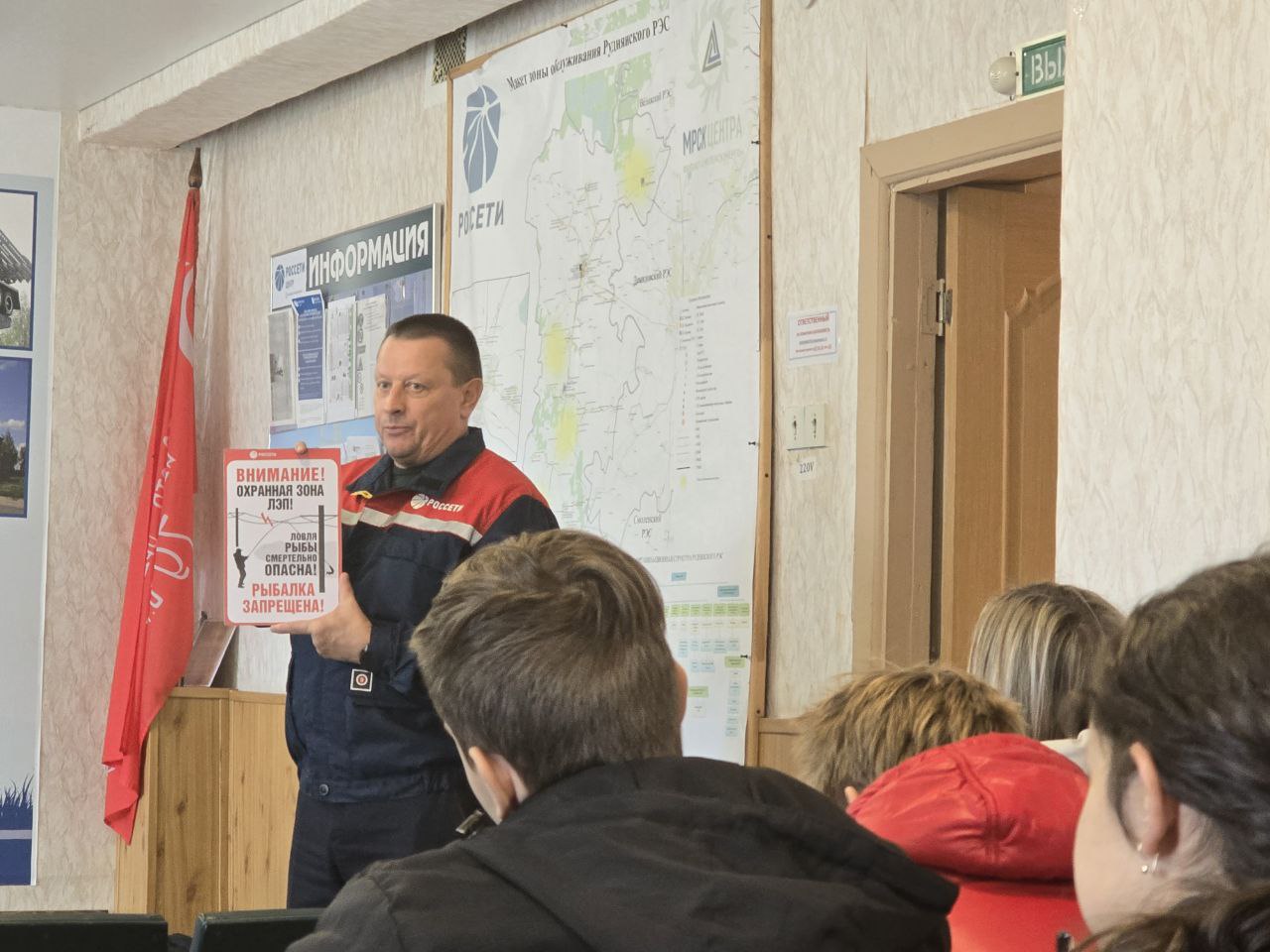 Начальник районных электрических сетей Антипенков Александр Петрович рассказал ребятам об истории создания электросетей и принципах передачи электроэнергии, о том, как развивается крупнейшая электросетевая компания нашей области сегодня и что ожидает ее в будущем. Отдельно он остановился на профессиях, которые нужны для обслуживания электросетей, и учебных заведениях, подготавливающих специалистов для данной отрасли.