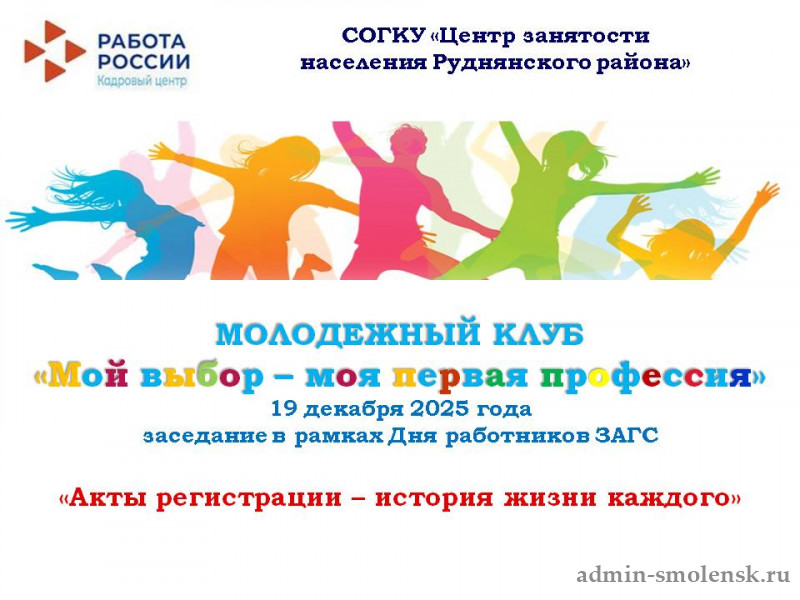 19 декабря в рамках молодежного клуба «Мой выбор – моя первая профессия» СОГКУ «Центр занятости населения Руднянского района» организовал для старшеклассников МБОУ «РСШ № 2» профтур в отдел ЗАГС Руднянского округа. Ведь самый первый документ, удостоверяющий личность гражданина выдается именно здесь.