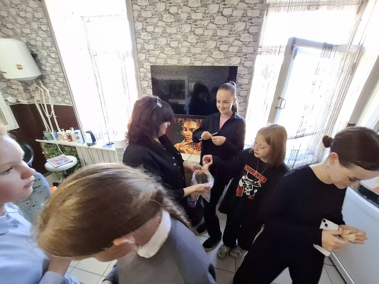 Ребята смогли увидеть, как организовано рабочее пространство, какие инструменты используются, и познакомиться с основными технологиями, применяемыми в парикмахерском искусстве